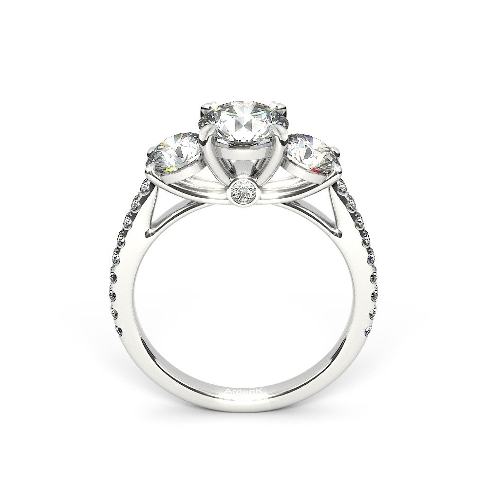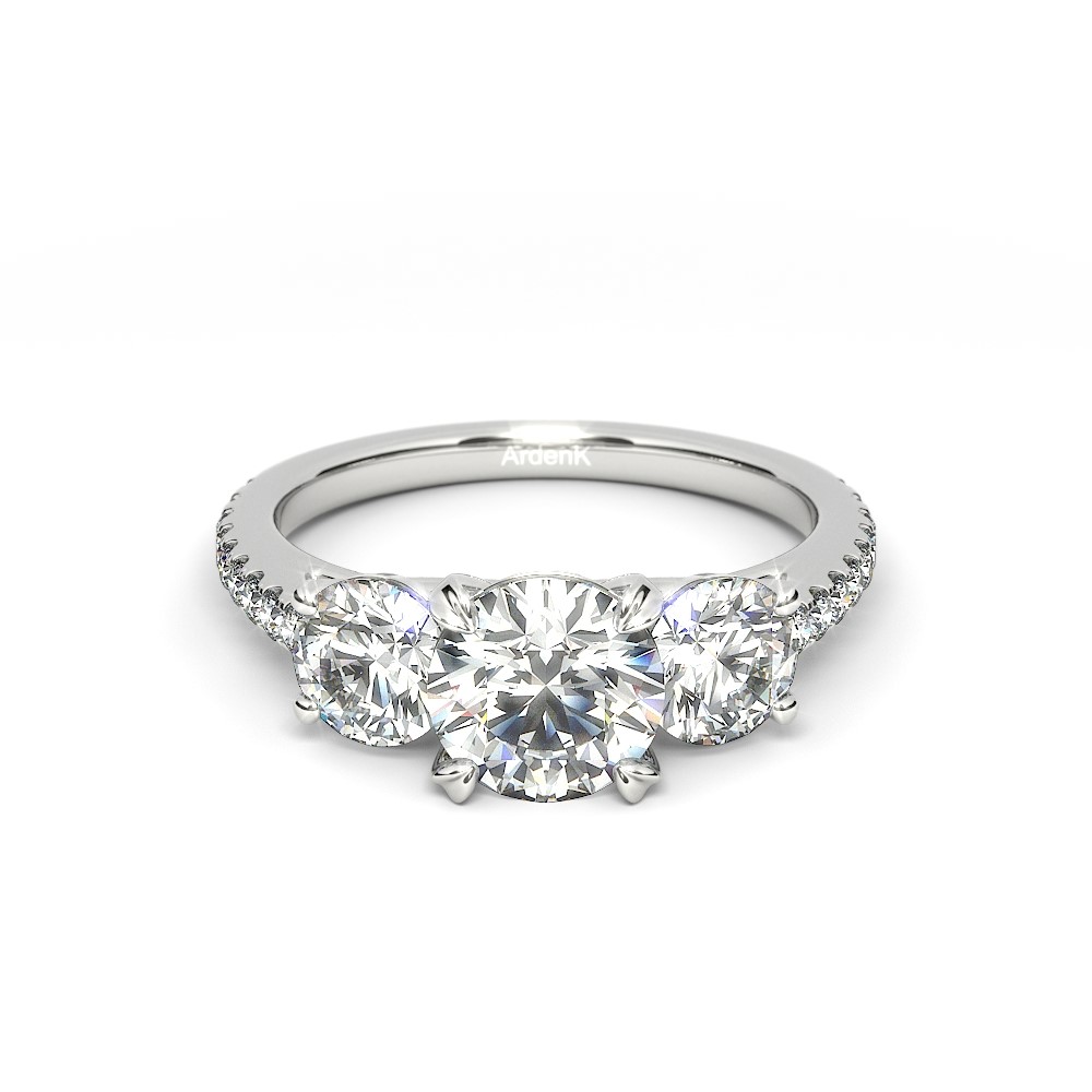 Exquisite,1.70 carat diamond total weight with .90 G VS certified center diamond engagement ring design to sculpted to grace finger of your loved one, the unique "Adina" design which stands for (Delicate and Refined) in Hebrew. Also stands for “Past, Present and Future “you will love this magnificent 3 diamonds Engagement Ring. Decorated with Handpicked 3 diamond center Stones and Micro pave side stones to match Her elegance.