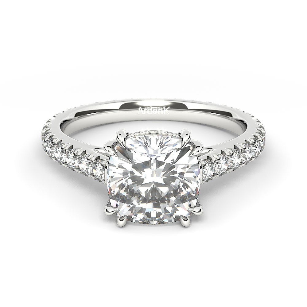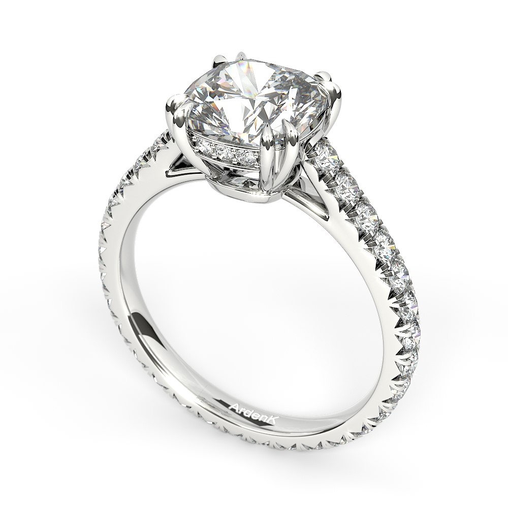 ArdenK design reflects the beauty of this amazing Engagement Ring, elegant classic double prong ring with 8 prongs (symbolizing for infinity for us and for Chinese word Fa, stands for wealth or fortune) securely holding the magnificent handpicked center diamond, all GIA certified G VS , with matching French-micro Pave set side diamonds ,.18k white gold setting ,.