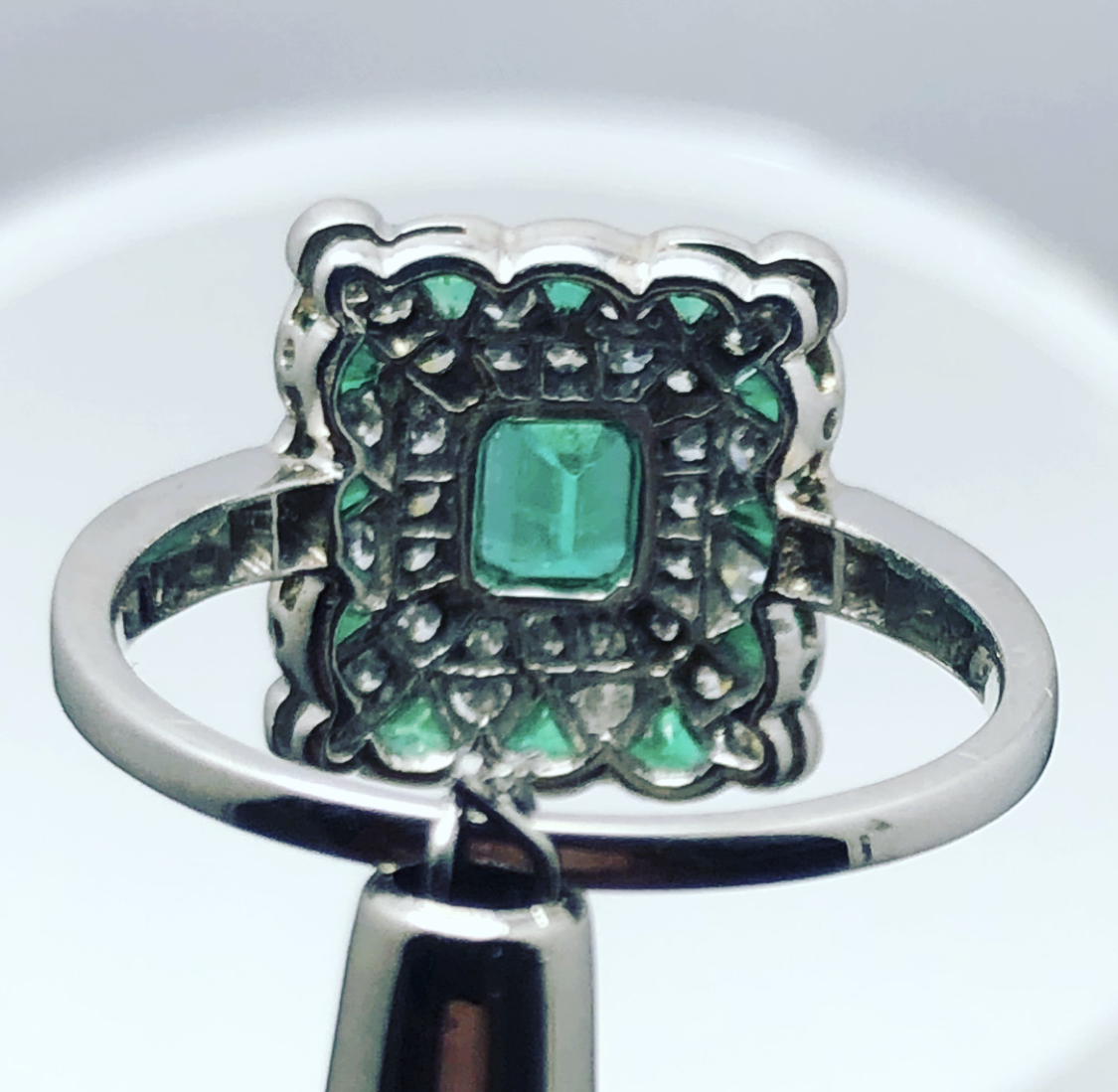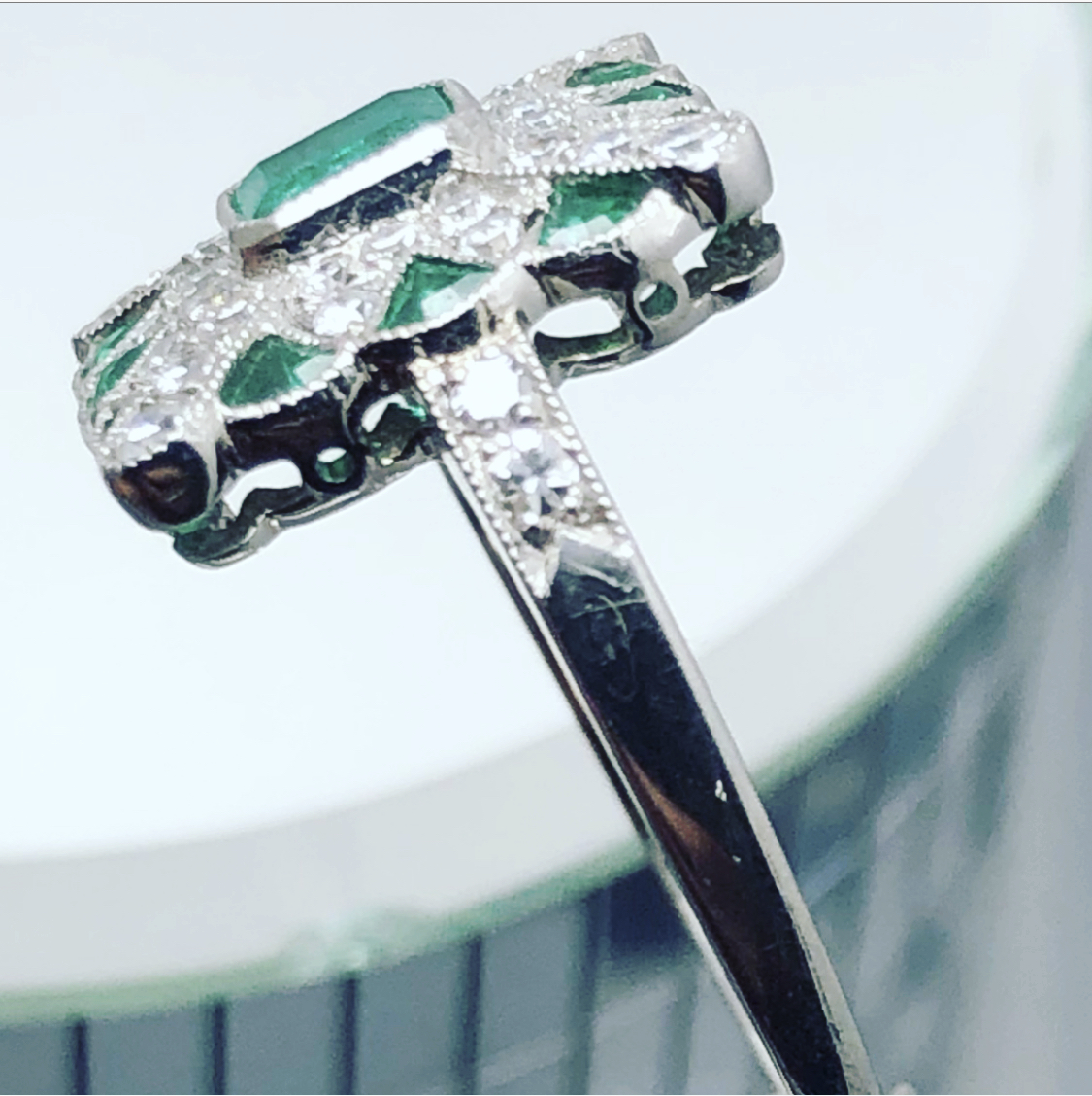 ArdenK Art deco circa unknown, elegant, magnificent, timeless and exquisite jewelry, Roma in mind, hand made in platinum by very talented masters, .52 carat total diamonds with special cut 1.25 carat total emeralds. , great gift for every occasion .